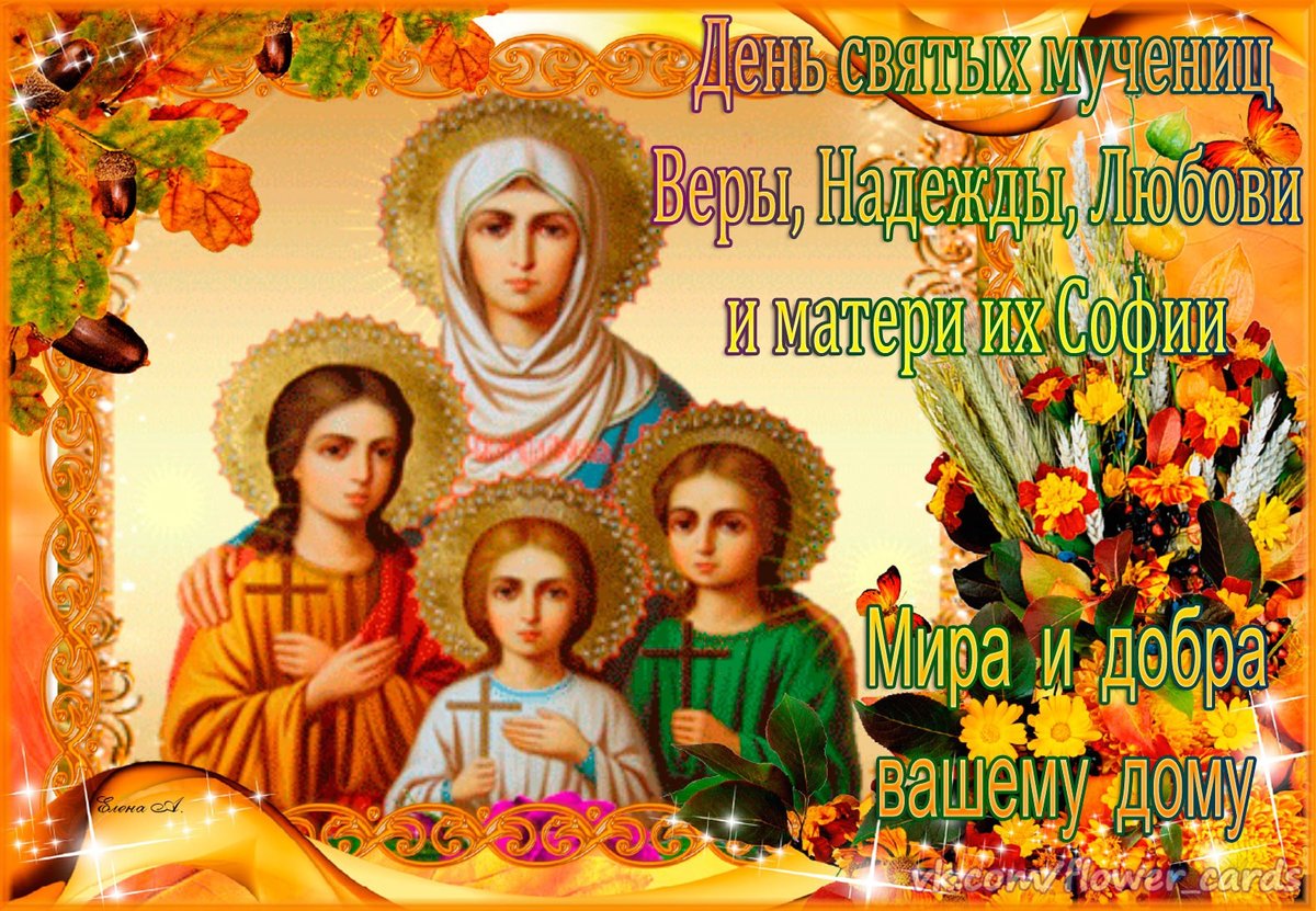 Ежегодно 30 сентября православные отмечают День памяти святых мучениц Веры, Надежды, Любови и матери их Софии. Также этот день является Днем ангела девушек с такими же именами как у святых.