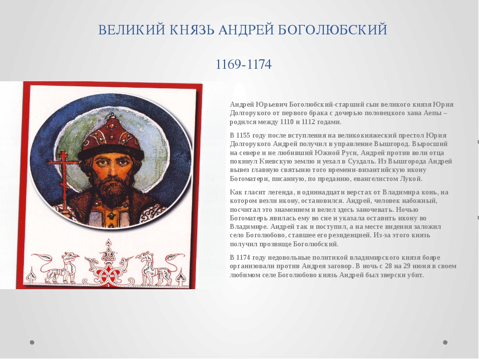 Итак, перед вами краткая биография Андрея Боголюбского.