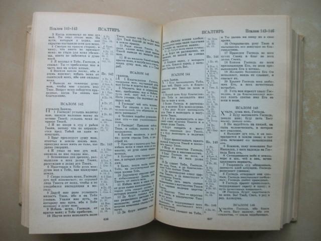 4. Русский перевод. Когда с течением времени славянский язык стал значительно отличаться от русского, для многих чтение Священного Писания сделалось затруднительным. Вследствие этого был предпринят перевод книг на современный русский язык. Сначала по указу императора Александра I и по благословению Святейшего Синода был издан Новый Завет в 1815 году на средства Российского библейского общества. Из ветхозаветных книг была переведена только Псалтирь — как наиболее употребительная в православном богослужении книга. Затем, уже в царствование Александра II, после нового, более точного издания Нового Завета в 1860 году, появилось печатное издание законоположительных книг Ветхого Завета в русском переводе в 1868 году. В следующем году Святейший Синод благословил издание исторических ветхозаветных книг, а в 1872 году — учительных. Между тем в духовных журналах стали часто печататься русские переводы отдельных священных книг Ветхого Завета. Так что полное издание Библии на русском языке появилось в 1877 году.