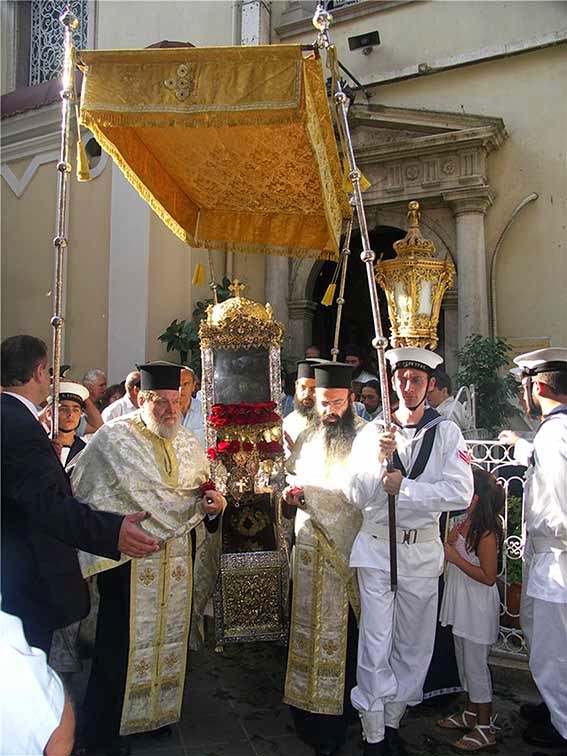 — Так говорят, не могу утверждать точно; но то, что к нему ежедневно приходят сотни людей, видел сам. Для паломников из России первая встреча со святым Спиридоном не только трепетна, но и необычна. В традиции Русской Православной Церкви мощи святых закрывают лицо, оставляя открытыми кисти рук и ноги. Здесь же наоборот, открыта только голова, а все паломники прикладываются к сапожкам святого.