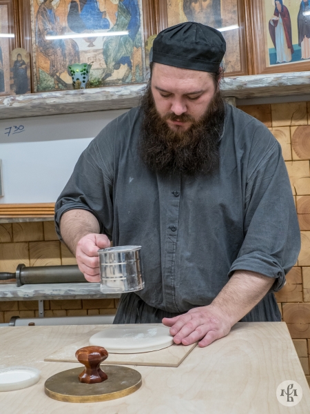 Просфоры приготавливаются из лучшей пшеничной муки, замешанной на чистой воде с добавлением соли, закваски из дрожжей и святой воды, и выпекаются с чтением Иисусовой молитвы просфорницами – женщинами благочестивой жизни.