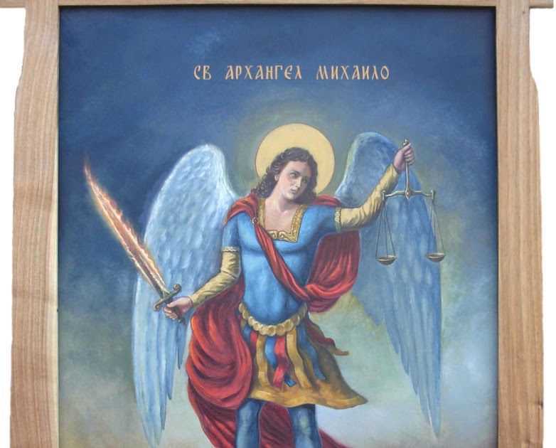Михаил же начальник сый небесных воинств, избавляет нас от всяких бед и скорбей, недуг и злых грехов. Первый бо ангелом, и вместо денницы поставлен бысть.