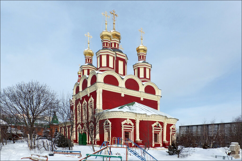 В любом случае, храм получился красавцем. И крайне необычным, потому что сочетает в себе несочитаемые казалось бы вещи. С одной стороны, по сути – храм сельский с присущей ему архитектурой, а с другой – совершенно нетипичное богатое оформление наружного облика. И вот это сочетание несочитаемого дало в результате очень нарядный храм с радостными красными тонами фасада и яркими белыми его деталями.