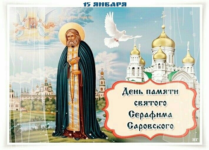 День преподобного Серафима Саровского отмечается также 15 января. Это день его смерти. В житии святителя очень трогательно описано, как келейник обнаружил его уже остывшее тело, в молитвенной позе, склонившееся перед образом Пресвятой Богородицы.В этот день в храмах совершается панихида и читается тропарь Серафиму Саровскому.