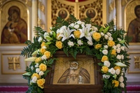 Торжественная и радостная атмосфера, а также ликующее пение приходского хора под управлением Н.М. Миро объединили всех участников праздника. Их лица излучали радость и покой. Посреди храма находились приходская дореволюционная икона преподобного Серафима с частицей его святых мощей и личная святыня Первоиерарха – деревянный ковчег с осколками от епитрахили, перчатками и другими вещами, принадлежавшими прославленному святой.