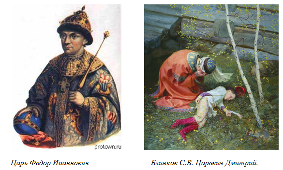 Правда, в 1591 году при правлении Фёдора Иоанновича произошло событие, крайне негативно сказавшееся на дальнейшем ходе русской истории, — в Угличе при невыясненных до конца обстоятельствах погиб последний сын Ивана Грозного, Дмитрий. Нужно, правда, при этом учесть, что на тот момент царевича Дмитрия как претендента на престол не рассматривали — он родился в седьмом браке Ивана Грозного, и церковь полагала эти отношения незаконными. Именно поэтому Дмитрий и оказался не в столице, а в Угличе.