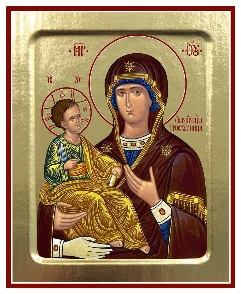С таким внутренним наполнением следует подходить к такому образу, как Троеручица (икона Божией Матери), смысл которого неописуемо велик. Ее задача донести до всех следующее: рука Иоанна Дамаскина есть вечное свидетельство того, что спасение может прийти по велению и под руководством Владычицы Владычицы.