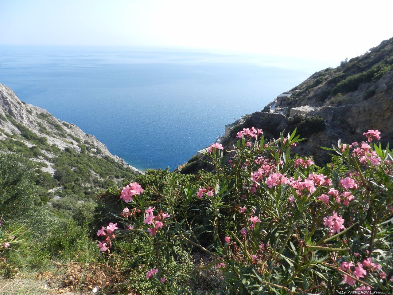 Впрочем, в ночлеге хозяева, как правило, отказывают. Чтобы вернуться на главную тропу, вам придётся, не без мучений, карабкаться в гору – перепад по высоте составляет 500 метров. Если же вы из тех, кто горы обходит, постарайтесь попасть на судно, каждое утро отправляющееся из гавани Кавсокаливия, что в получасе ходу от одноимённой обители.