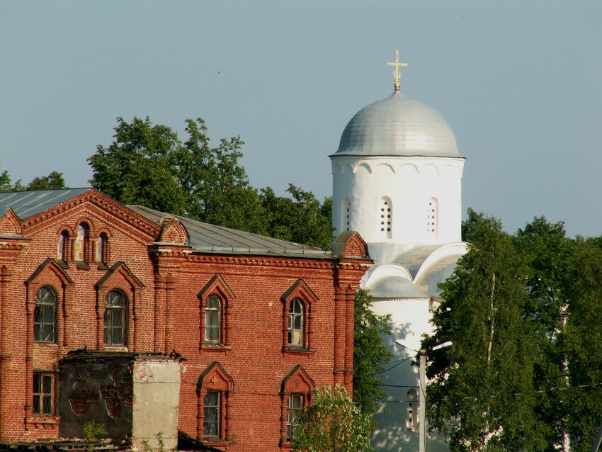 Вид от р. Волхов и Раскатной башни на церковь св. Георгия.