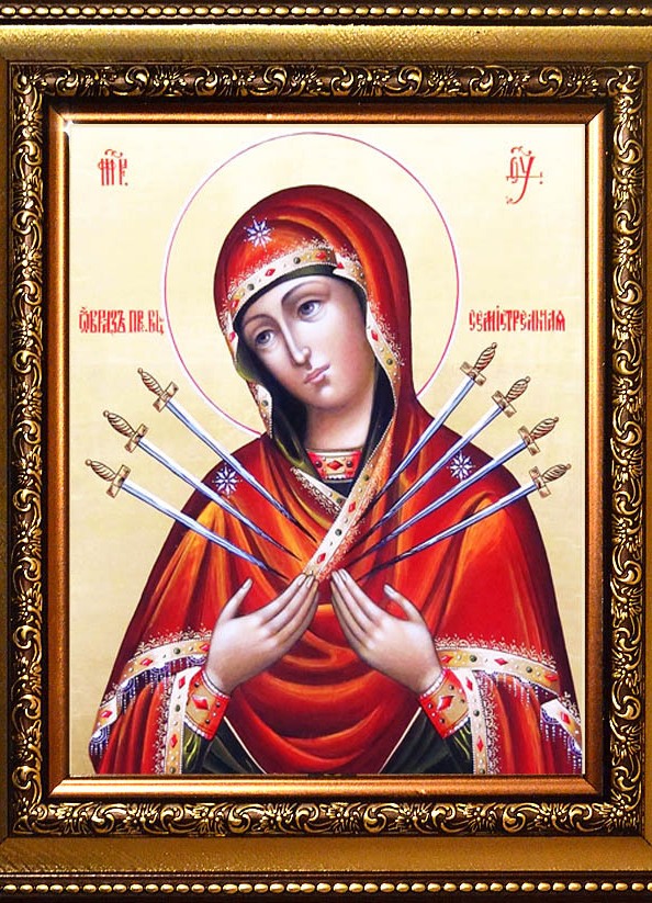 Близок к иконе Божией Матери «Умягчение злых сердец» другой чудотворный образ — икона Божией Матери «Семистрельная».