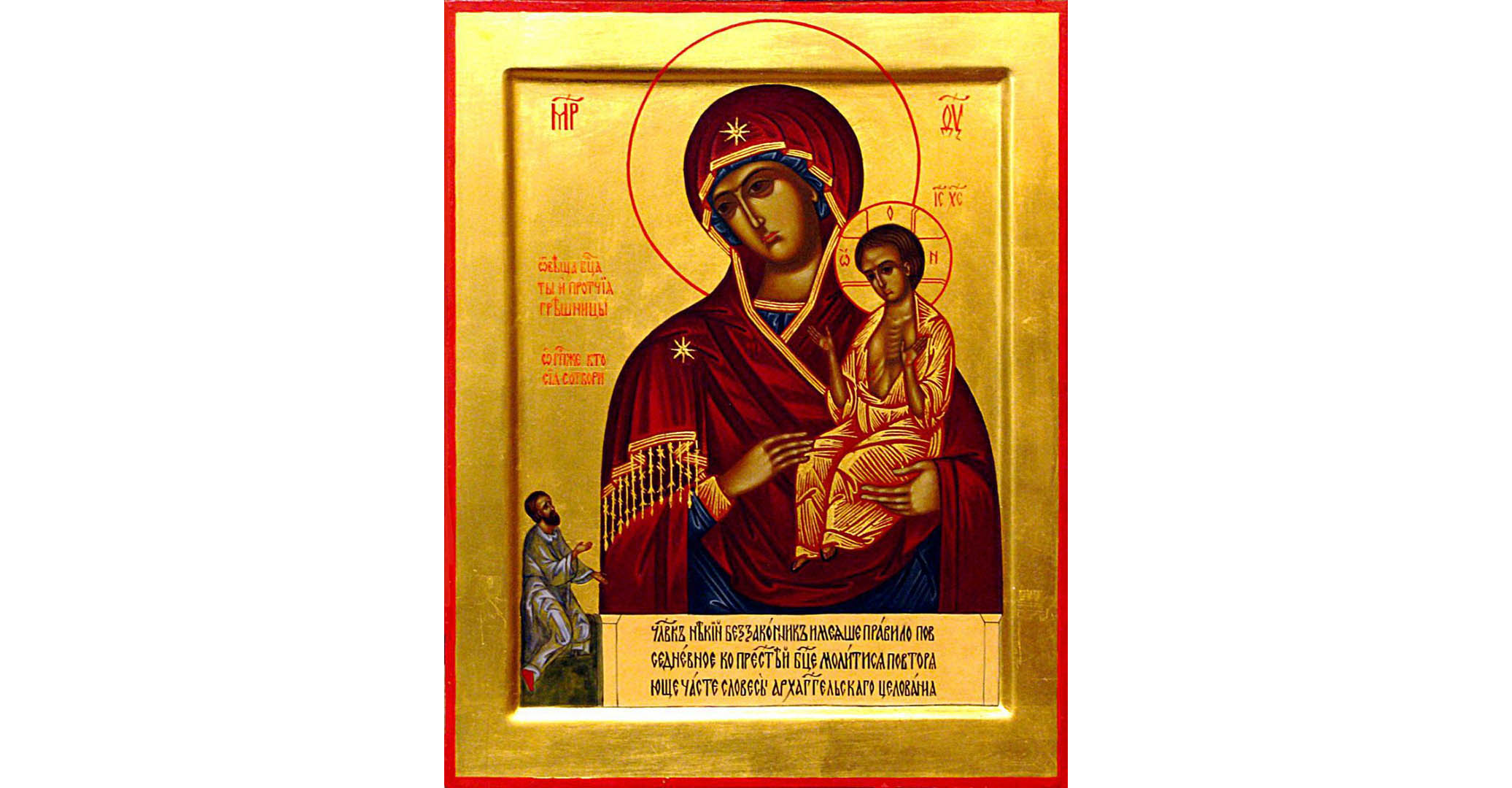 Бурею греховною смущаеми и отягченнии сном нерадения, припадаем святой иконе Твоей, благодарим милостивое посещение Твоею иконою на месте сем, поюще непрестанно Богу песнь: Аллилуиа.