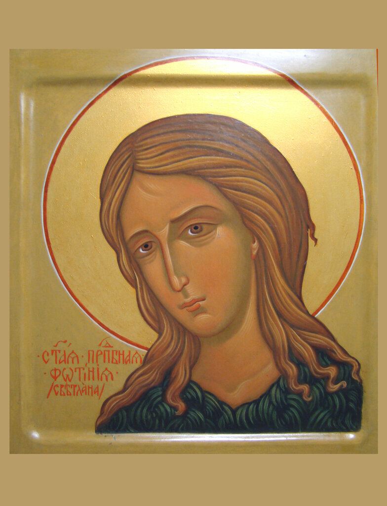 Молитвы, обращенные к преподобной Фотинии Палестинской подле ее иконы, излечат вашу душу от скверны, а также помогут вам преодолеть любое горе.