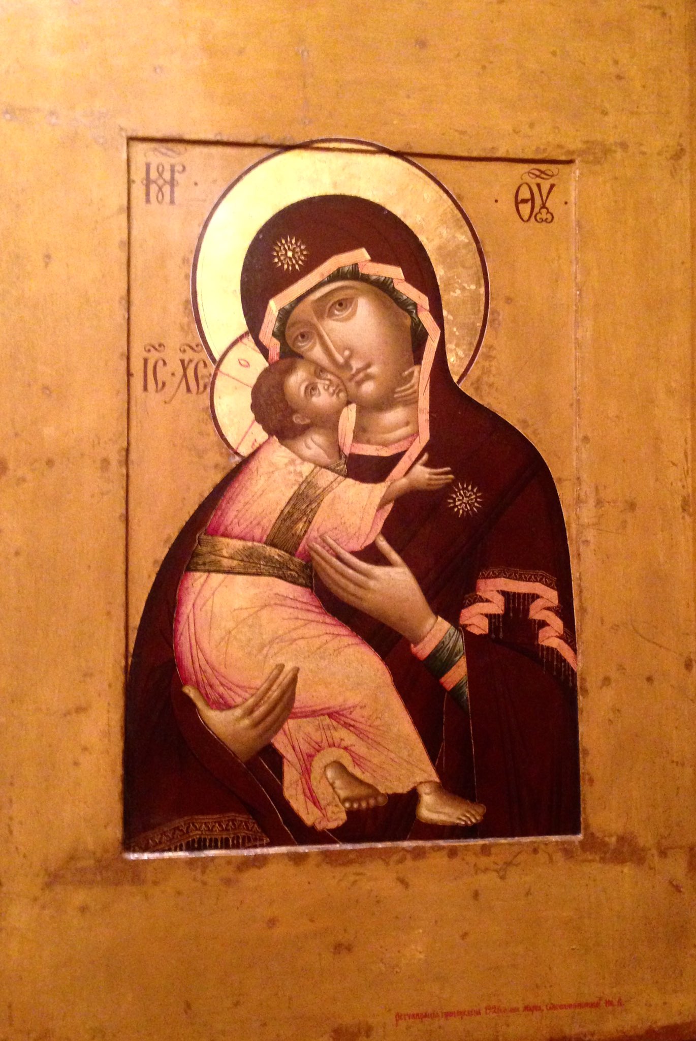 Интересно! Древних икон, подобных Владимирским, до наших дней не сохранилось. На протяжении многих веков изображение несколько раз реставрировали, на него накладывали несколько слоев краски.Но что удивительно — Лики Христа и Девы Марии до сих пор сохранились в отличном виде.