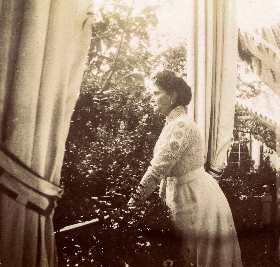 Госу­да­рыня Импе­ра­трица Алек­сандра Фео­до­ровна Рома­нова (25 мая/7 июня 1872 – 4/17 июля 1918), стра­сто­тер­пица. Урож­ден­ная прин­цесса Алиса Вик­то­рия Елена Луиза Беат­рисса Гес­сен-Дарм­штадт­ская, импе­ра­трица Все­рос­сий­ская, супруга импе­ра­тора Нико­лая II, роди­лась в Дарм­штадте в 1872 году в коро­лев­ской семье гер­цога Гес­сен­ского Людвига IV и гер­цо­гини Алисы, по мате­рин­ской линии внучка англий­ской коро­левы Вик­то­рии. Кре­ще­ние полу­чила в люте­ран­стве. С юно­сти прин­цесса отли­ча­лась кра­со­той, вос­пи­та­нием и обра­зо­ва­нием. 8 апреля 1894 года состо­я­лась помолвка между Али­сой и цеса­ре­ви­чем Нико­лаем Алек­сан­дро­ви­чем. 14 (27) ноября 1894 всту­пила в брак с Импе­ра­то­ром Нико­лаем II. Алиса с дет­ства была рели­ги­озна и под уго­во­рами сестры Ели­са­веты Фео­до­ровны пере­шла из люте­ран­ства в пра­во­сла­вие. Прин­цессу при­няли в лоно Церкви с име­нем Алек­сандра через миро­по­ма­за­ние. Чин при­со­еди­не­ния ея к Пра­во­слав­ной Церкви совер­шил св. прав. Иоанн Крон­штадт­ский. Вен­це­нос­ная семья сде­ла­лась образ­цом под­линно хри­сти­ан­ской, спло­чён­ной семьи. Госу­да­рыня несла заботы о вос­пи­та­нии и обу­че­нии детей, пере­дала им свою религиозность.