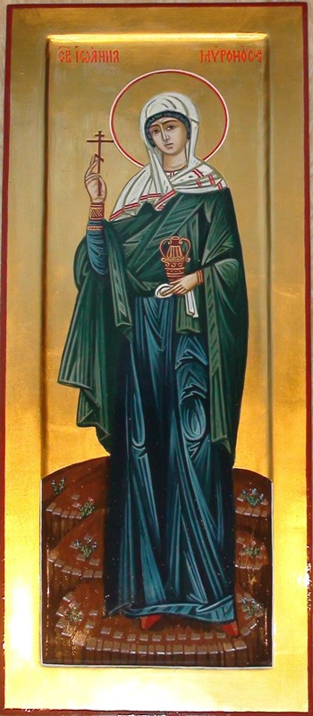 Святая Иоанна Мироносица, супруга Хузы, домоправителя царя Ирода, была одной из жен, следовавших за Господом Иисусом Христом во время Его проповеди, и служила Ему.