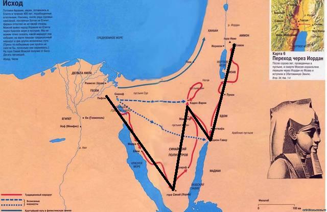 Карта исхода евреев из Египта.