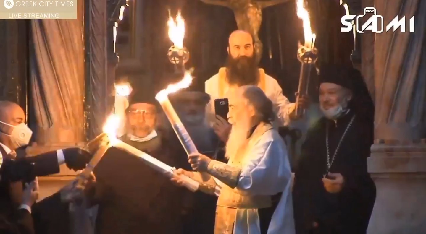 Поскольку в день Великой субботы у него нет возможности пронести с собой пламя, то можно решить, что Огонь проносят и прячут у Гроба заранее.