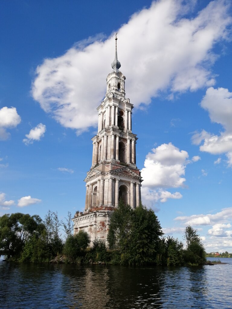 Из воды посередине реки торчала колокольня. Как? Почему? Что за история стоит за этим? Тогда бабушка мне вкратце объяснила, что колокольня затоплена. И на этом всё.