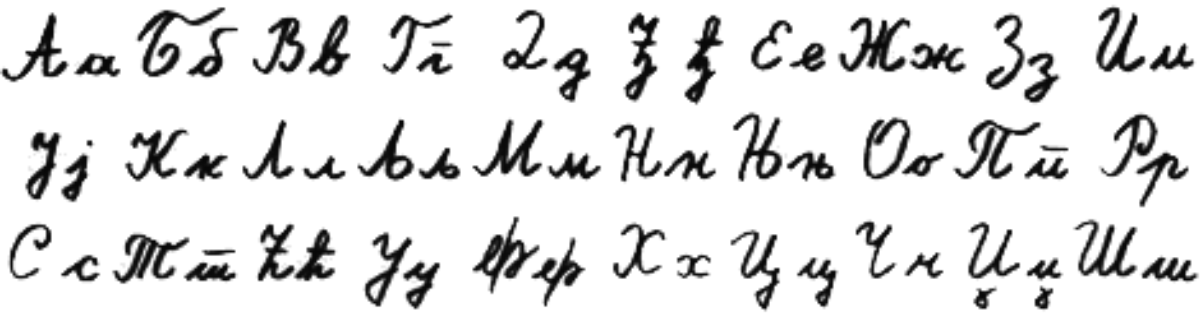 Example of typical cursive modern Serbian Cyrillic alphabet