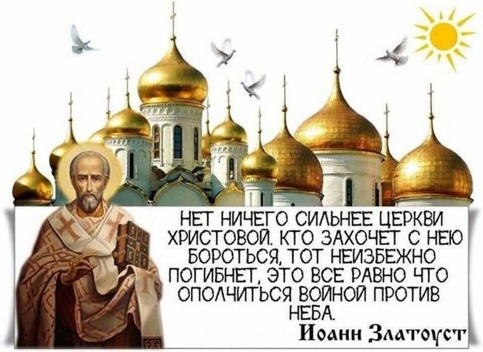 «Тот не может уже иметь Отцом Бога, кто не имеет матерью Церковь. Находящийся вне Церкви мог бы спастись только в том случае, если бы спасся кто-либо из находившихся вне ковчега Ноева» свщ. Киприан Карфагенский.