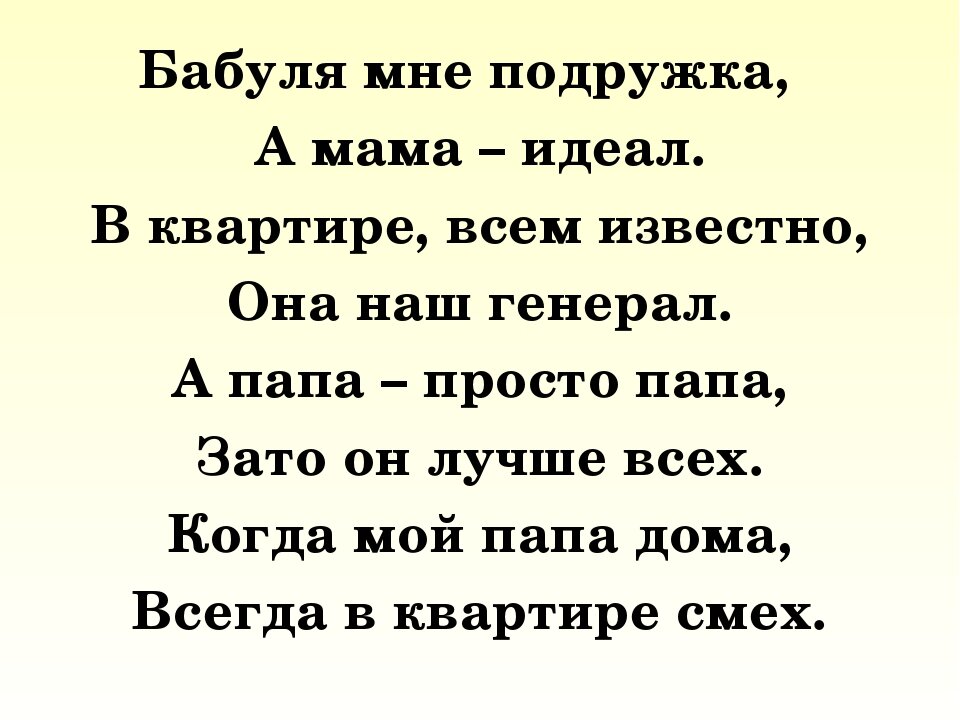 Больше приноси зарплату —Мой папа любимый,Чем строгий, но