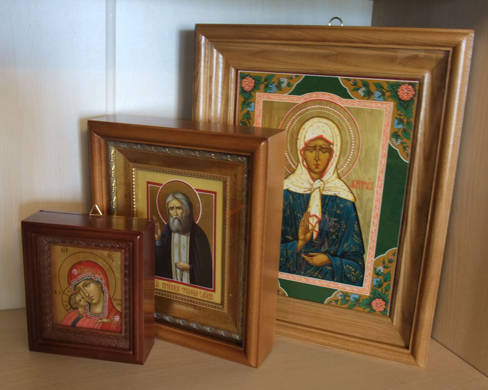 Именно эти иконы составляют основу домашнего иконостаса. Все остальные иконы можно разместить уровнем ниже или по обе стороны от них.