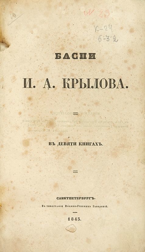 Крылов издал свой первый сборник басен в 1809 году, целиком посвятив себя этому жанру. После того, как книги Крылова -х годов привлекли внимание императорской семьи, он получил должность в Санкт-Петербургской общественный библиотека , где проработал 30 лет библиотекарем. Когда Александр I пообещал поддержать Крылова , если он напишет «хорошо», он ничего не написал. Между 1824 и 1926 годами он не сочинял стихов, и его обычно называли самым ленивым человеком в России .