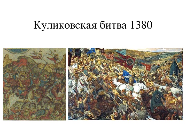 8 сентября 1380 года на Куликовском поле (ныне юго-восток Тульской области) объединенные русские войска под предводительством московского великого князя Дмитрия Ивановича вступили в сражение с армией беклярбека Золотой Орды Мамая и его союзников. Эта битва, получившая название Куликовской, закончилась победой Дмитрия, что резко подняло значение Великого княжества Московского.