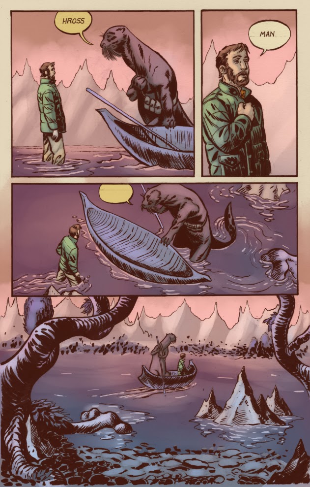 Как радостно было вновь увидеть Рэнсома — тем радостнее, что показан он глазами других, центральных, персонажей, и от этого выглядит как-то… объемнее. Как будто ты сперва несколько лет жил душа в душу с соседом по комнате, а потом наблюдаешь за ним через телек — он, например, космонавт, или там спортсмен известный — и ты одновременно и следишь за его жизнью, и вспоминаешь совместные приключения. Примерно такое чувство нахлынуло на меня при появлении в одной из глав дорогого профессора филологии.