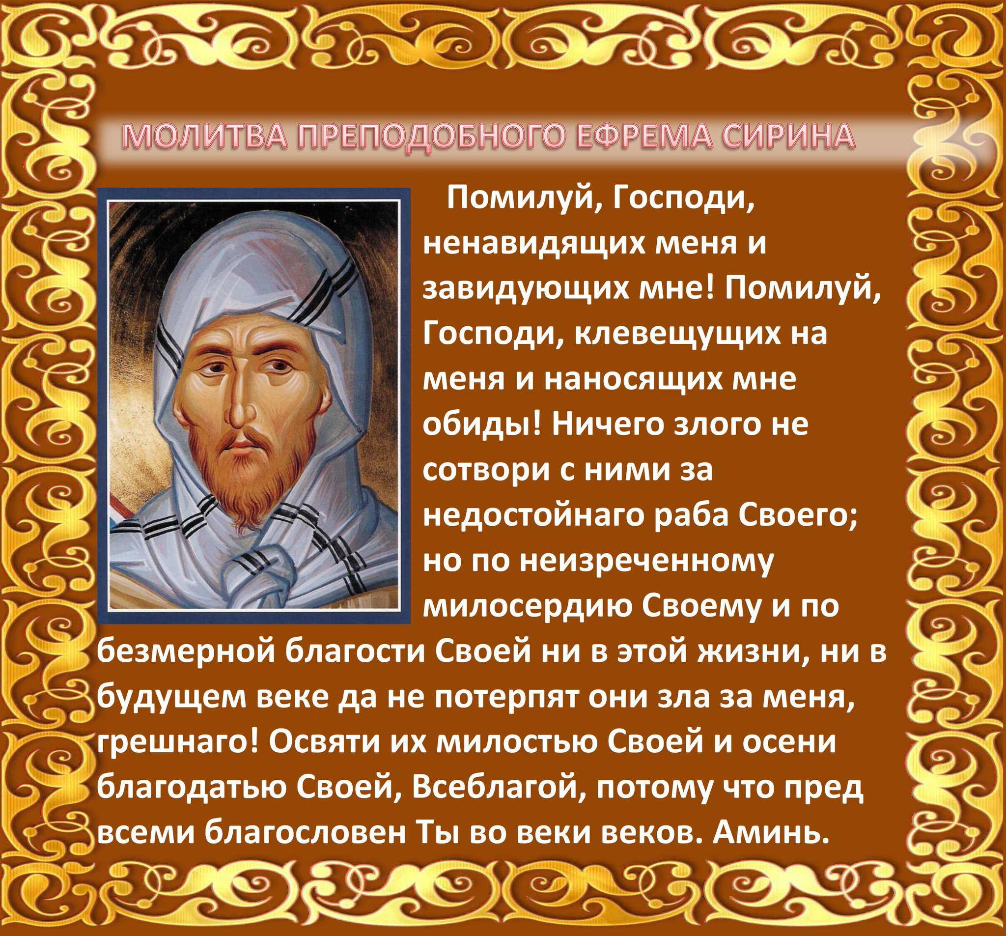 «Господи всемогущий! Спаси и сохрани раба грешного Твоего (имя). Огради меня от злобы и зависти, завистников моих терзающих. Отведи от меня гнев их и силу слова недоброго. Помоги, Господи, не пойти по стопам их да убереги от гнева ответного, в душе моей зарождающегося. Прости, Господи, за грехи мои да накажи врагов моих по справедливости.
