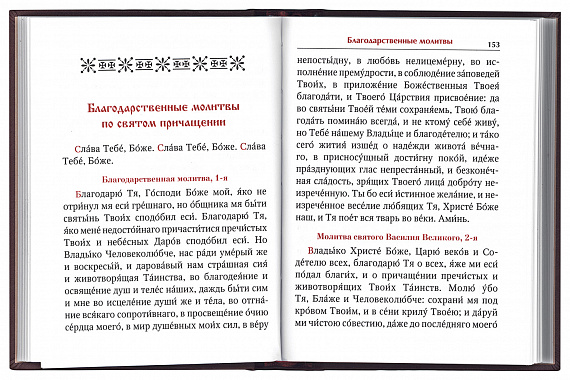 Владыко, благодетель многомилостивый! Чрез причащение священных тайн да освящусь душою и телом, да просвещусь, да спасусь; да буду домом Твоим, имея Тебя в себе, вместе с Отцом и Духом.