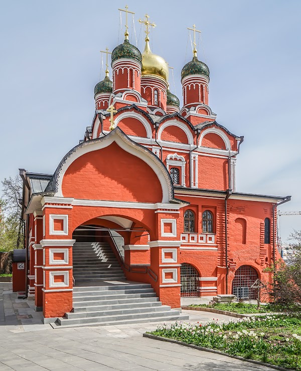 Андрей Стратилат. В 1652 году при монастыре появилась школа, ставшая первым академическим учебным заведением в Москве. Сюда приезжают туристы, чтобы увидеть церковь XVII века, украшенную цветными глазурованными изразцами в виде павлиньих глаз.