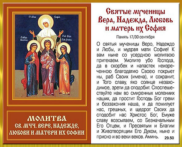 Надежда вера любовь и мать их софия молитва: Молитвы мученицам Вере, Надежде, Любови и матери их Софии