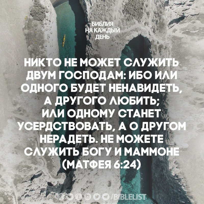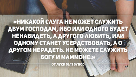 Луки 16:13 «Никакой слуга не может служить двум господам: ибо или одного будет ненавидеть, а другого любить; иначе он будет держаться одного и пренебрегать другим. Вы не можете служить Богу и мамоне».