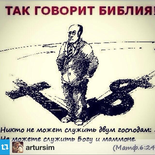 «Никто не может служить двум мастерам.Либо вы будете ненавидеть одного и любить другого, либо будете преданы одному и презираете другого. Вы не можете служить одновременно Богу и деньгам.