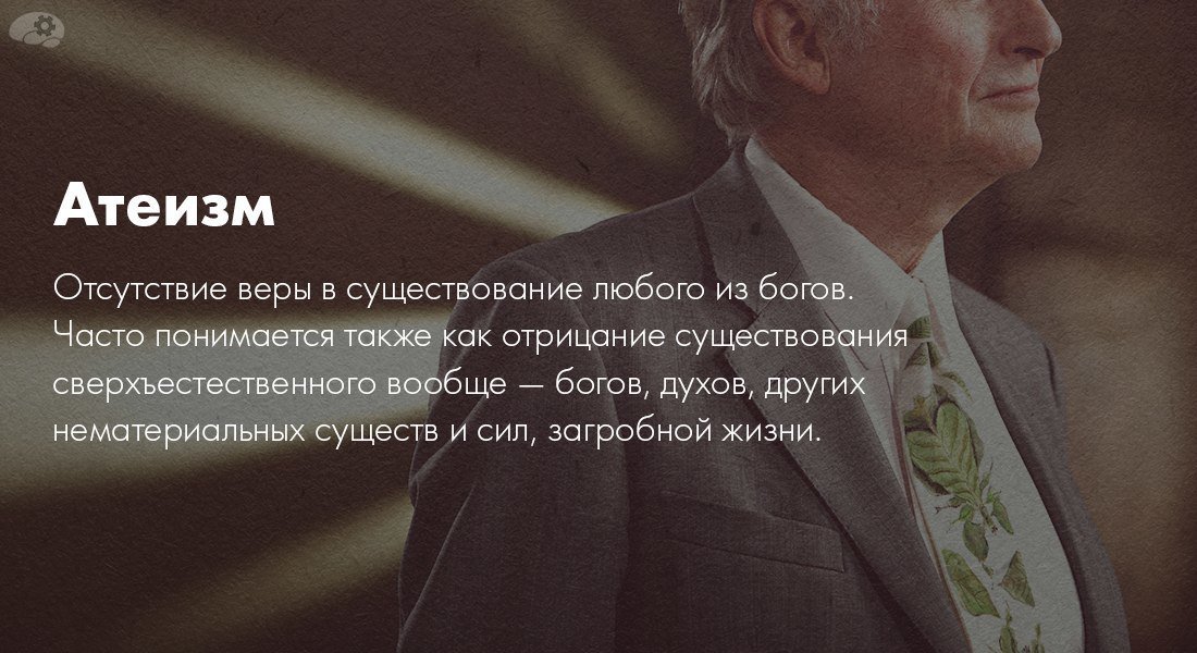 Атеизм — это мировоззрение, которое основывается на отрицании существования Бога или любого другого существа, который создал мир. Атеисты убеждены в самодостаточности естественного мира: по их мнению, никто свыше не нужен для обеспечения жизнедеятельности.