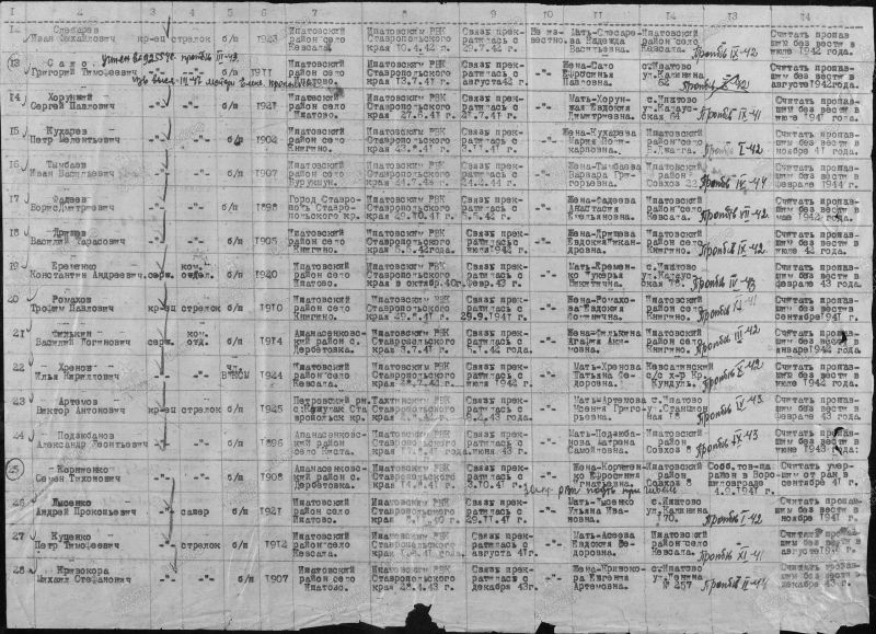 www.polk.ru — информация о советских и российских солдатах, пропавших без вести в войнах XX века (в том числе страницы «Великая Отечественная война» и «Неврученные награды»).
