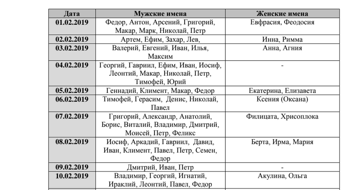 В календаре православия определены и имена по месяцам на 2018 го по для мальчиков: