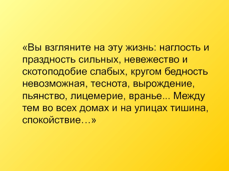 Покажите такого благородного господина или госпожу, чьё властное поведение, свидетельствуя о господстве и независимости их экономического положения, вызывало бы у нас в то же время столь же убедительное ощущение доброты и справедливости. Именно среди представителей того праздного слоя, который занимает самое высокое положение и с кем мало кто может сравниться, следование приличиям находит своё самое полное и зрелое выражение. Именно этот наивысший слой придаёт правилам приличия ту окончательную формулировку, в которой они служат законом поведения для более низших слоёв. И здесь также кодекс поведения самым очевидным образом связан с достойным положением в обществе, демонстрируя со всей ясностью, что это положение несовместимо со всякой грубой производительной работой. Божественная самоуверенность и властное самодовольство, подобные тем, которыми обладает человек, привыкший требовать подчинения, не тревожась о дне грядущем, даются от рождения и являются мерилом оценки благородного господина, достойного своего высокого положения; а по общему представлению, даже более того, такая манера поведения принимается как качество, присущее превосходящему достоинству, перед которым низко-рождённый простолюдин счастлив склониться и уступить.