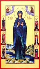 Разумом совершенным познала еси истиннаго Бога и Его ради еллинскую мудрость отвергла еси, к подвигом иноческаго жития рачение имеющи, немощь естества женскаго отложила еси: возвращающуюся бо колесницу ко граду своему, в дом отеческий, оставила еси, власы главы своея постригши и в мужеское одеяние облекшися, вкупе со евнухами своими во обитель притекла еси, идеже Божиим Промыслом святителя Еллия узрети сподобилася еси. Сего ради ублажаем тя сице: