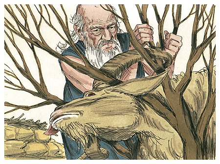 Так оно и случилось. Когда мальчик уже лежал на жертвеннике, а Авраам занес над ним руку с ножом, с неба раздался голос: «Авраам! Авраам! Не поднимай руки твоей на отрока, ибо теперь Я знаю, что боишься ты Бога и не пожалел сына твоего, единственного твоего, для Меня».