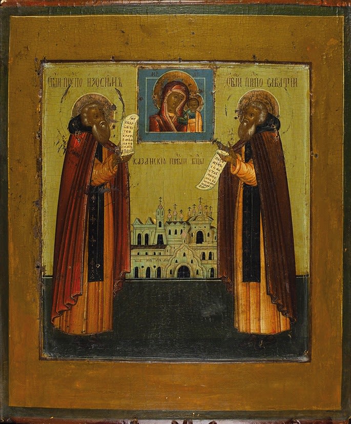 Москва. 1940-1980.Прпп. Зосима и Савватий. Монахиня Иулиания (Соколова). Икона. | |