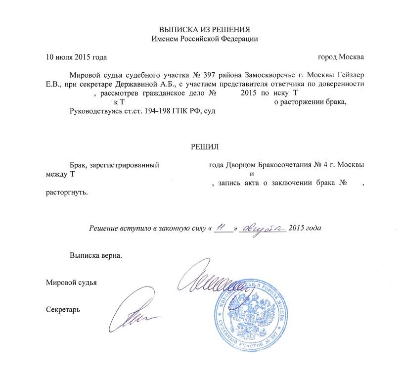 - расторжение официального брака, развод.
