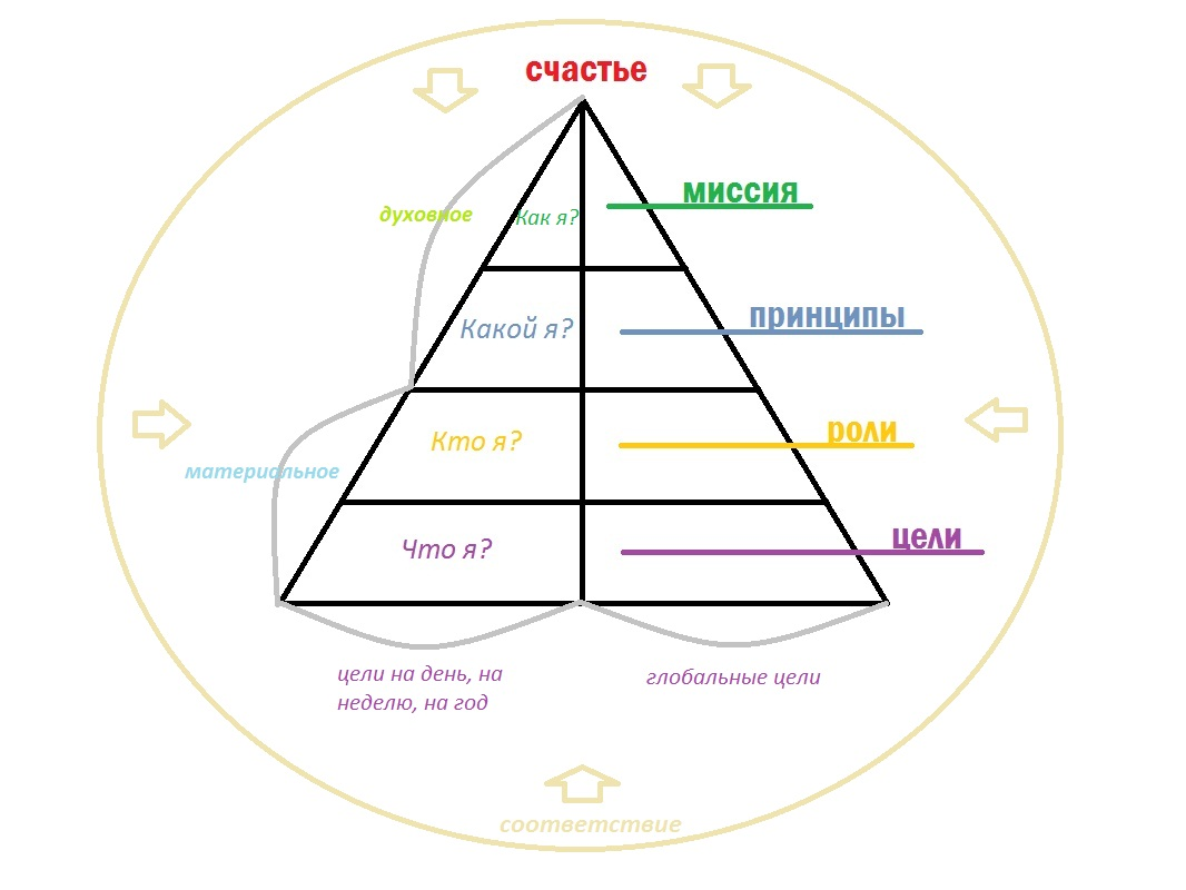 К счастью, Вы уже знаете, что такую силу можно обрести лишь точным соблюдением множества основополагающих принципов, сведенных воедино».В своей книге Хилл подробно описывает шестнадцать законов успеха, которые создали самое большое количество миллионеров. Но сегодня, во времена глобализации, интернета и сжатой информации есть еще более удобные инструменты для того, чтобы стать счастливым внутри себя и создать ареол счастья вокруг, ощущая это счастье сегодня, здесь и каждый день.Таким инструментом на своих уроках поделился с нами основатель Школы Бизнеса и Личностного Развития Алекс Яновский (http://www.alexyanovsky.com). Подробно о личности Алекса и деятельности его Школы Бизнеса можно посмотреть на его сайте. Не исключено, что вы проникнитесь большим уважением, интересом и любопытством к тому, что делает Алекс со своей командой в этой Школе. Однако мы сосредоточимся на уникальном инструменте, который он предлагает для обретения счастья и успеха, — это пирамида счастья.
