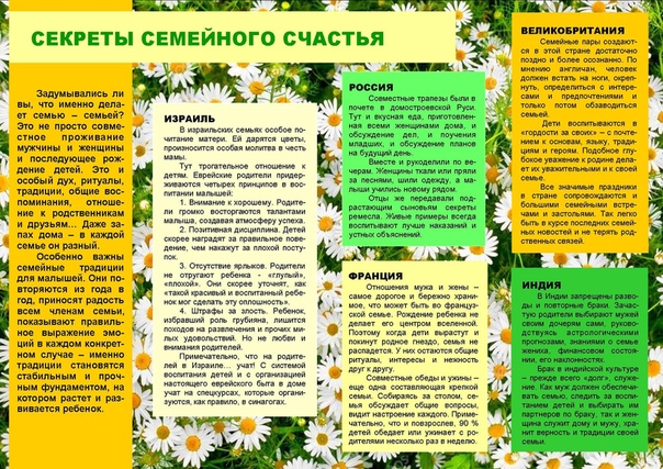 Итак, поработайте над созданием веселых традиций в вашей семье. Попробуйте украсить елку яйцами на Пасху, ввести новую рождественскую традицию или просто пошутить в кругу семьи.Неважно, какие они, но все эти маленькие ритуалы могут принести вам радость и в значительной степени способствовать созданию счастливой семьи.