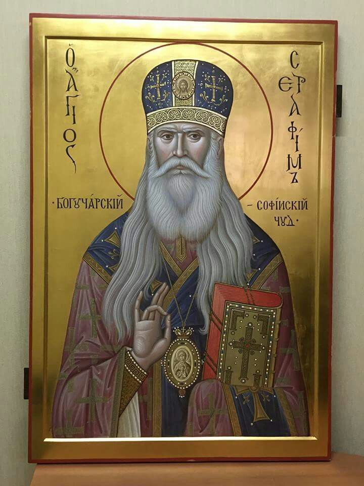 Божественною ревностию присно распалаемь,/ Православия столп явился еси/ в Софии граде возсияв,/ и благочестием твоим многия люди ко Христу привел еси,/ пастырю добрый, святителю Серафиме,/ моли Христа Бога, спастися душам нашим.