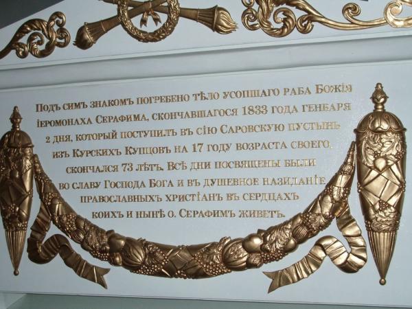 Прохор Исидорович Мошнин, прославившийся впоследствии как Серафим Саровский, родился в 1754 году в Курске, в купеческой семье, и умер в 1833, в Сарове. В Саровском монастыре он, как желающий получить монашеское звание, принимает в 1778 году послушание монастырского работника и в 1786 становится монахом с новым именем Серафим.