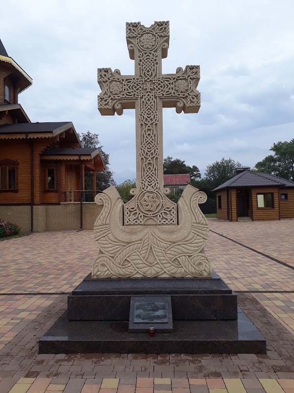 Статуя установлена напротив монастырской церкви преподобного Серафима Саровского. Среди икон в храме – Владимирская икона Божией Матери из Оптиного монастыря, крест из Ипатьевского дома из Екатеринбурга, а также две иконы Христа Спасителя, принадлежавшие царю Николаю II и находившиеся при царской семье в Тобольске. , Екатеринбург.