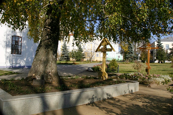 Прп. Серафим Саровский скончался в 1833 году и был погребен напротив южного фасада Успенского собора.