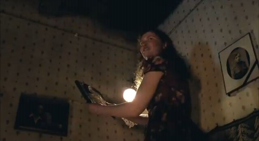 Иеромонах Серафим, которого допустили в дом, служит водосвятный молебен, извлекает икону из рук девушки и возвращает ее на место
